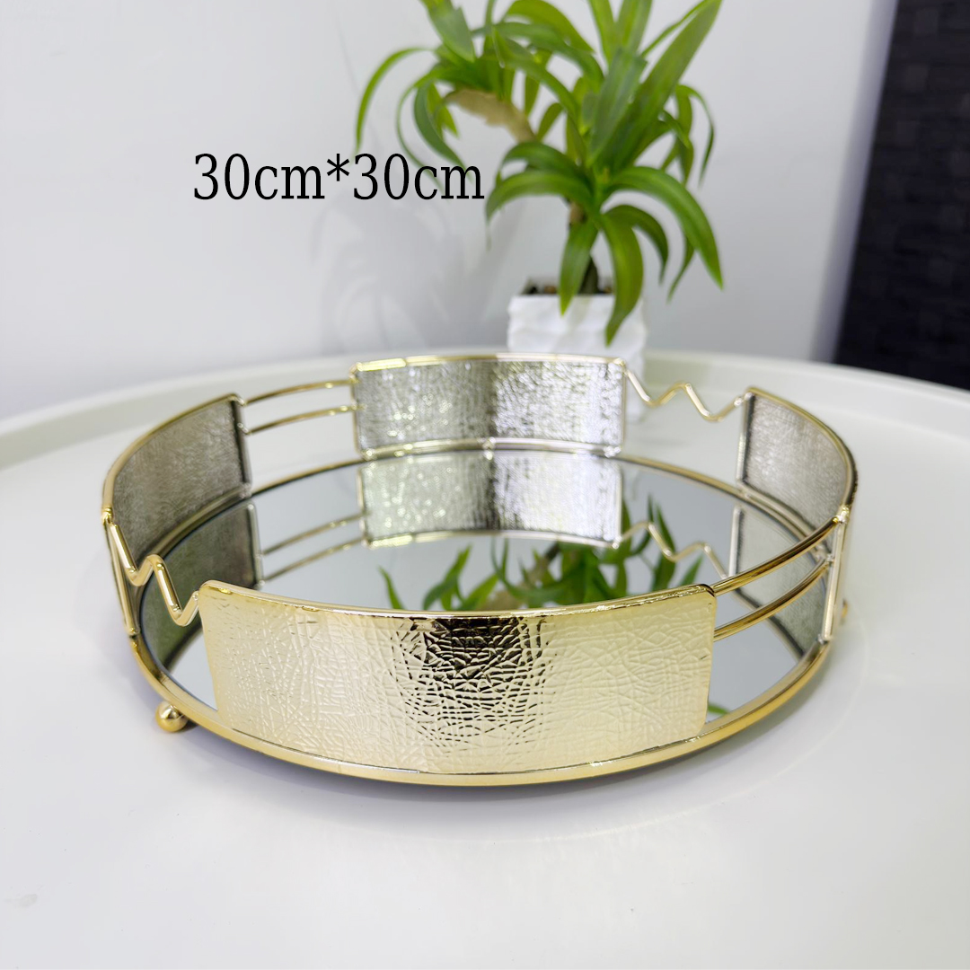 طقم صواني ذهبي دائري